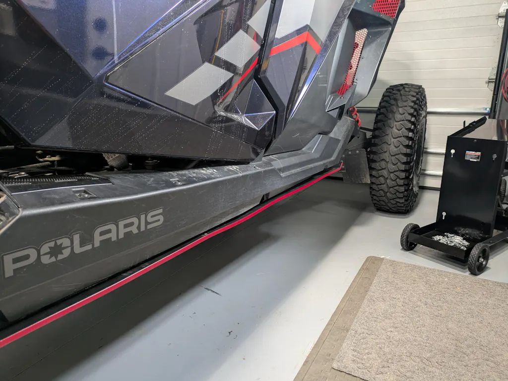 Protect your 2022 - 2025 Polaris Pro R 4 with Trail Armor’s full skid plate set, crafted from 1/2" super tough polymer. These skids offer excellent shock absorption, long-lasting surface durability without rust, and are lighter than metal counterparts. Drain holes are positioned to let debris wash away easily without removal. The kit includes multiple sections covering the underside, including front and rear differentials, with access points for servicing grease fittings and oil drains. Choose between Standard Sliders for extended rocker panel coverage or Trimmed Sliders, compatible with Pure Polaris Rock Sliders. Installation hardware and instructions are included. Some factory hardware may be reused. Shipping is via UPS ground with applicable large package fees. Color options are special order and non-returnable. These sliders do not feature any engraving—the included tri-color image illustrates the color contrast.  Front A-arm Guards and Trailing Guards displayed here are available for purchase separately. Refer to Product #'s TA012ARMIMPFG-PROR, TA012IMPTAG-PROR for details. Consult the Fitment Guide for exact vehicle compatibility.